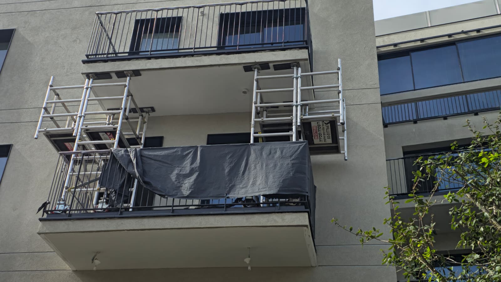 סיימנו להקים פיגום נייד רחב וגבוה עם 3 מרפסות